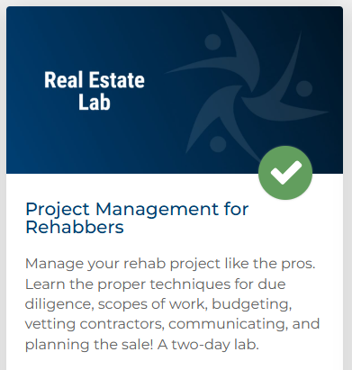 - The Project Management for Rehabbers Lab will be located in the 11th row