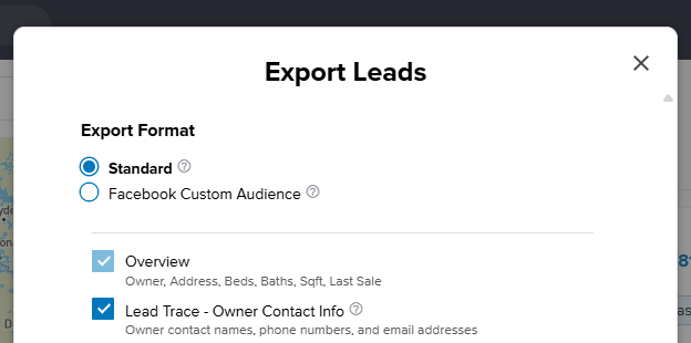 - Select the "Standard" Export Format, then click on "Lead Trace"